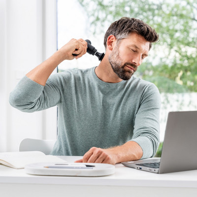 Ого! MG 79 Massage Gun дуже маленький (всього 14,7 см), але дуже потужний. Завдяки трьом рівням інтенсивності, трьом масажним насадкам та часу роботи від акумулятора до 3 годин він ідеально підходить для чутливих ділянок тіла, таких як м'язи шиї, стоп та щелепи.