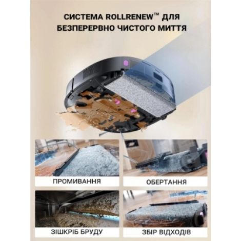 | Функції | продовження прибирання після підзарядки, лазерні датчики, розпізнавання перешкод, встановлення розкладу прибирання, вибір режиму руху, станція автовивантаження сміття, система антизаплутування у проводах |