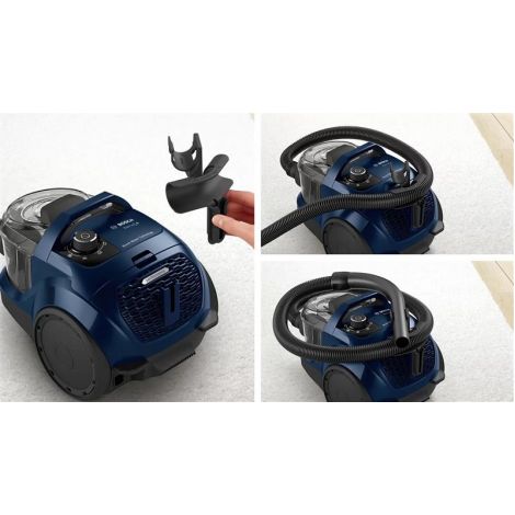 Гарантія на мотор 10 років. Насолоджуйтеся потужною роботою пилососа завдяки моторам Bosch. Розробляючи та виробляючи наші високопродуктивні двигуни в Німеччині вже понад 65 років, ми не тільки очікуємо, що пилосос забезпечить оптимальні результати, а й буде довговічним, що ми гарантуємо нашою 10-річною гарантією на двигун. Повітря на виході чистіше, ніж у приміщенні. Дихайте легко за допомогою фільтра HEPA, який робить повітря на виході чистішим, ніж у приміщенні. Він фільтрує 99,95% дрібних пилових частинок, бактерій і забруднювальних речовин - ідеально підходить для людей, які страждають на алергію. фільтр, що миється - жодних витрат на додаткові матеріали. Висока ефективність прибирання навіть коли контейнер заповнений. Висока продуктивність, навіть якщо контейнер заповнений? З технологією Power AirCycle і мотором Bosch це можливо. Точно розрахований циклон і оптимально кероване повітря тричі циркулюють у контейнері для пилу та потужна центрифуга відокремлює пил від повітря. Чистіше повітря і гігієнічне використання з двома фільтрами. Подвійна гігієна з двома фільтрами. Один фільтр під контейнером для пилу й один на задній панелі пилососа, щоб забезпечити чистіше відпрацьоване повітря у вашому домі. Завдяки продуманому дизайну можна повністю очистити контейнер для пилу, не торкаючись фільтра - для ще більш гігієнічного обслуговування. Легке очищення контейнера для пилу. Зручне користування важливе під час прибирання. Контейнер для пилу витягується одним натисканням кнопки, не втрачаючи пилу. Завдяки своїй круглій формі контейнер легше чистити, оскільки бруд не потрапляє в кути. Простота зберігання шланга, що економить місце. Завдяки простому рішенню для зберігання шланга, його можна щільно прикріпити до пилососа, що заощадить простір. Ідеально підходить для зберігання на невеликій площі, такій як шафа.