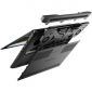 Используемое в конструкции этого ноутбука крепление дисплея на одной петле предотвращает попадание выходного воздушного потока на дисплей. Такая конструкция позволила максимально увеличить объем внутреннего пространства и повысить эффективность охлаждения четырехъядерного процессора и выделенного графического адаптера.