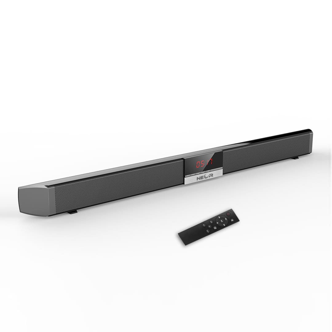 Беспроводной саундбар с пультом дистанционного управления и LED-дисплеем Особенности: 34 дюймовая звуковая панель Deep Bass: звуковая панель имеет полночастотный громкоговоритель мощностью 40 Вт (4*10 Вт) и 2 басовые мембраны с четким стереозвуком. Не искажает звук даже при максимальной громкости. Система объемного 3D звука: разработана по технологии DSP для четкости и точности. Поддерживает 3 режима звука: режим новостей, режим музыки, режим фильма. Беспроводные или проволочные подключения: присоединить звуковую панель к интерактивной панели, смарт-телевизора или других мобильных устройств с помощью встроенного приемника Bluetoot. Soundbar также оснащен вспомогательным разъемом 3,5 мм, портом USB и оптическими / коаксиальными / RCA-подключениями, что работает с большинством устройств. Простота в использовании и настройке: мы предлагаем инфракрасный пульт дистанционного управления, который обеспечивает вам максимально комфортное использование саундбар.