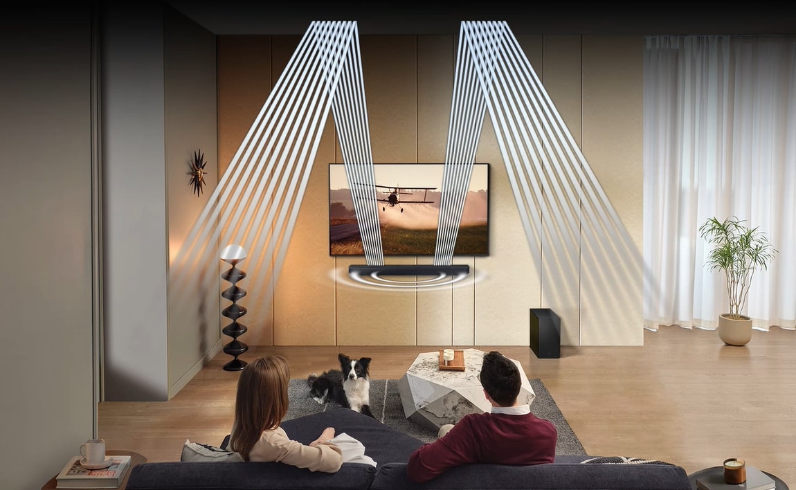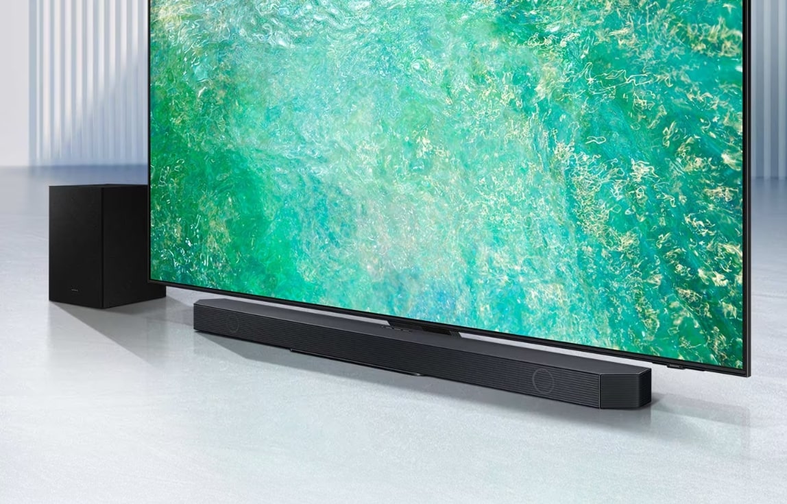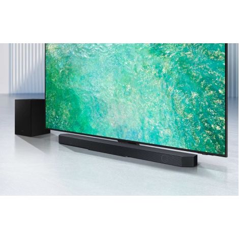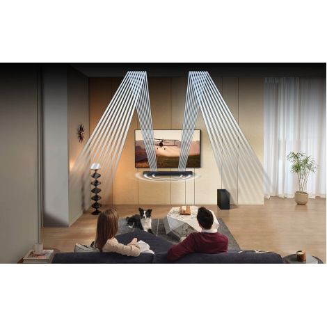 Чисте занурення у звук! Бездротове з’єднання Dolby Atmos з телевізорами Samsung. Вбудоване бездротове підключення Smart TV до саундбару Dolby Atmos. Справжній 3.1.2-канальний звук. Приголомшливий верхній звук з 2 динаміками, спрямованими вгору. Технологія Q-Symphony. Телевізор і саундбар поєднуються ідеально. Технологія SpaceFit Pro. Звук адаптований під ваш простір. Dolby Atmos з бездротовим підключенням. Об’єктно-орієнтовані аудіоформати вперше реалізовані в саундбарі Samsung бездротовим способом. Відчуйте ефект синергії, створений неперевершеним 3D-звуком з контенту Dolby Atmos і саундбара Samsung - і все це без кабелів. Приголомшливий звук, що йде зверху, завдяки 2 динамікам, спрямованим вгору. 3 динаміки, 1 динамік сабвуфера і 2 висхідних динаміки створюють повноцінне звукове середовище, що забезпечує захопливий звук. Гармонійне поєднання телевізора і саундбара. Технологія Q-Symphony забезпечує оптимізований для всіх каналів звук як через телевізор, так і через фронтальні, бічні та спрямовані вгору динаміки саундбара для максимального занурення в звучання. Технологія Q-Symphony сумісна з деякими телевізорами Samsung. Функції можуть бути несумісні з усіма телевізорами Samsung. Перевірте характеристики продукту для телевізора. Функція вимагає HDMI, оптичного або Wi-Fi-підключення до телевізора. Звук ідеально адаптований під ваш простір. SpaceFit Sound Pro поєднує в собі підвищену чіткість і захоплюючий звук SpaceFit Sound з оптимізованими басами для приголомшливого звуку, точно налаштованого для вашого простору. Технологія SpaceFit Sound сумісна з Samsung QLED (Q70^ і вище). Лабораторія звуку Samsung Audio Lab. Розроблено експертами з інновацій. Тестування та налаштування проведено в нашій каліфорнійській аудіолабораторії, де аудіоінженери світового класу застосовують передові акустичні технології, щоб ви могли насолоджуватися збалансованим звуком, що заповнює кімнату. Звучання одним дотиком. Слухаючи музику на телефоні, просто доторкніться ним до саундбара і за мить насолоджуйтеся улюбленим звучанням у неймовірному аудіо саундбарі. Звуковий дотик працює через Bluetooth і сумісний з мобільними пристроями Samsung з Android 8.1 і вище. Адаптивний звук. Звук оптимізований до кожної сцени. Саундбар Samsung аналізує звукові доріжки для оптимізації звуку для конкретного контенту. Тож ви чуєте чистий, деталізований звук - що б ви не переглядали. Ігровий режим Pro. Будьте частиною гри з динамічним звуком. Потопайте в тривимірних звуках вашої гри. Потужні високочастотні та низькочастотні динаміки саундбара автоматично активуються з телевізором і відтворюють динамічний звук, оптимізований відповідно до жанрів у Gaming Hub телевізора. HDMI eARC. Якість звуку без втрат. HDMI eARC передає такі якісні формати об’ємного 3D-звуку без втрат, як Dolby Atmos, з під’єднаних ігрових консолей і UBD-плеєрів через телевізор на саундбар. Синергія з QLED. Один пульт для максимального контролю. Використовуйте пульт до телевізора Samsung для керування як телевізором, так і ключовими функціями звукової панелі, такими як живлення, гучність і навіть звукові ефекти. Бездротове підключення до телевізора. Підключіть саундбар до телевізора за допомогою Wi-Fi або Bluetooth всього за кілька кроків. Аудіо та відео ідеально синхронізуються, щоб ви могли повністю зануритися в перегляд. Сумісність із Surround Sound Compatible. Розширте свій об’ємний звук. Додайте бездротові задні динаміки до свого саундбару