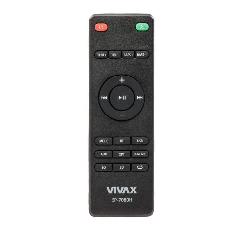 З новим Bluetooth-саундбаром Vivax SP-7080H можна створити кінотеатр у себе вдома. Підключіться до смарт-саундбару через Bluetooth за допомогою свого мобільного пристрою, а для підключення до телевізора у вас є кілька варіантів - HDMI ARC, RCA COAX AUDIO IN, OPTICAL AUDIO IN, AUX 3,5mm. Глибокий та потужний звук забезпечать середньоквадратична потужність 70 Вт, що забезпечує саундбар + сабвуфер, також ви можете налаштувати звук на ваш вибір за допомогою функції Еквалайзер (3 режими).