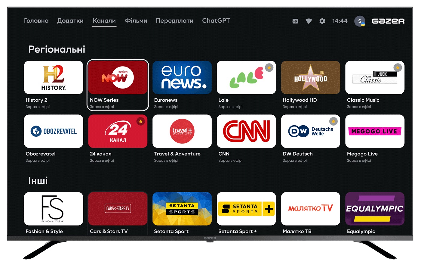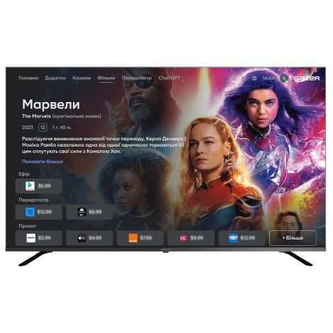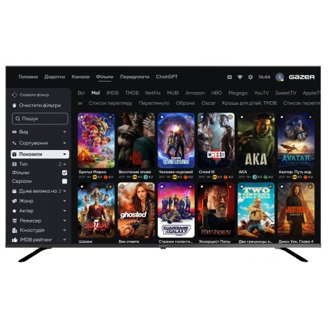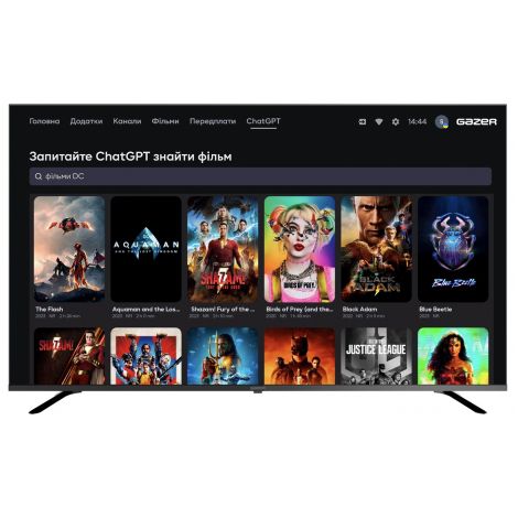 Миттєвий пошук фільму потрібною мовою, перелік застосунків де він точно є в наявності з умовами перегляду: підписка, оренда чи купівля. ChatGPT, який розуміє що ви хочете з півслова та одразу надає добірку відео, що відповідають запиту. Унікальний лаунчер з безліччю параметрів для пошуку фільмів. Мультикаталог з готовими добірками кінострічок на будь-який смак. Все це об’єднав в собі телевізор нового покоління Gazer METASMART TV TV50-UE2 art edition E2.