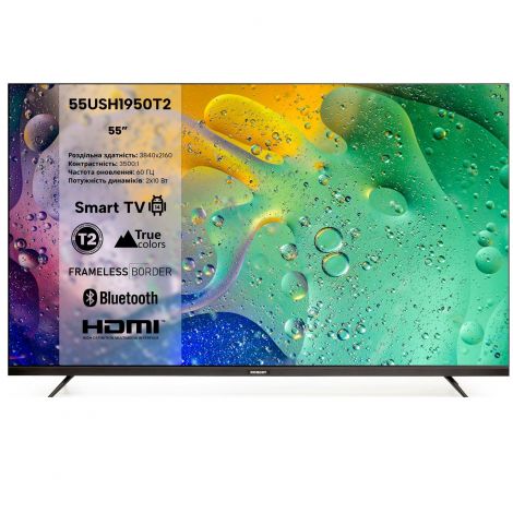 Romsat 55USH1950T2: Якість та розумні технології в елегантній оправі Відчуйте повне занурення в улюблений контент із 55-дюймовим телевізором Romsat 55USH1950T2. Цей телевізор — ідеальне поєднання елегантного дизайну, потужних технологій та широкого функціоналу, що перетворить ваш відпочинок на справжнє задоволення. Кінематографічне зображення та бездоганний дизайн Завдяки безрамковій технології та тонкому корпусу, Romsat 55USH1950T2 стане справжньою окрасою вашого інтер’єру. Він не просто телевізор — це вікно у світ розваг, що не відволікає зайвими деталями. Надчітка картинка: Насолоджуйтесь кожним кадром у роздільній здатності ULTRA HD (3840x2160) з технологією HDR. Сучасна VA-матриця забезпечує глибокий контраст (3500:1) та натуральні кольори, що робить динамічні сцени неймовірно реалістичними. Широкий кут огляду: Завдяки куту огляду в 178°, колір зображення зберігається, під яким би кутом, ви не переглядали зображення. Ідеально для перегляду фільмів у великій компанії. Елегантний зовнішній вигляд: Мінімалістичний дизайн та стійкі ніжки дозволяють легко розмістити телевізор на будь-якій поверхні. А якщо ви віддаєте перевагу кріпленню на стіну, використовуйте стандарт VESA: 140x300 мм. Безмежні можливості з Android 14 Операційна система Android 14 відкриває перед вами цілий світ контенту. Потужний 4-ядерний процесор забезпечує швидку та плавну роботу, дозволяючи завантажувати улюблені програми, ігри та стрімінгові сервіси. Швидкий доступ до розваг: Завдяки вбудованому Wi-Fi та веб-браузеру, ви можете миттєво дивитися YouTube, Netflix, спілкуватися в соцмережах або шукати інформацію в інтернеті. Зручне підключення: Bluetooth 5.2 дозволяє під’єднати бездротову акустику або навушники, а Wi-Fi Display — транслювати контент прямо зі смартфона. Чудовий звук та різноманітні підключення Потужний звук: Два вбудовані стереодинаміки по 10 Вт забезпечують чисте та об’ємне звучання, яке повністю занурює вас у подію на екрані. Усе для підключення: Телевізор оснащений усіма необхідними портами для ваших пристроїв 3 х HDMI для підключення ігрових консолей, ноутбуків та плеєрів. 2 х USB для перегляду контенту з флешок та зовнішніх дисків. Аналоговий та цифровий тюнери (DVB-C/DVB-T/DVB-T2/DVB-S2), щоб ви могли дивитися ефірне, супутникове та кабельне телебачення без додаткового обладнання. А також LAN port, AV IN, виходи на навушники та оптичний вихід для максимальної гнучкості. Romsat 55USH1950T2 — це розумний вибір для тих, хто шукає якість, стиль та безмежні можливості для розваг.
